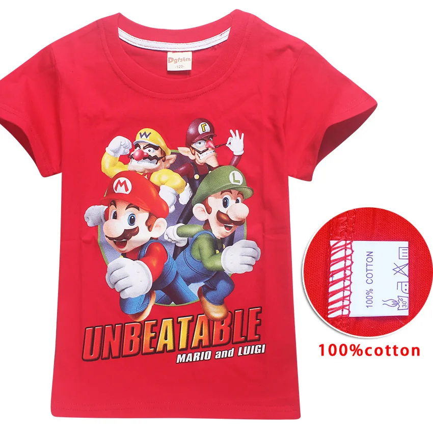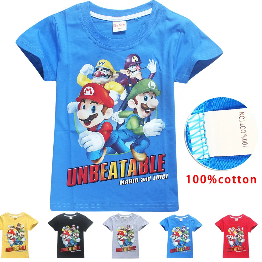 100% Cottton 2018 Summer Funny T Shirts for Girls Cartoon Mario Tops Tees Baby Boys Short Sleeve T-shirt Roblox Children Clothes