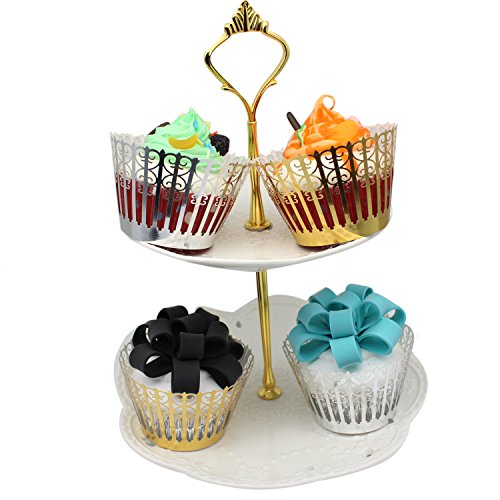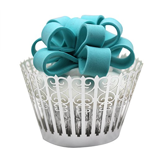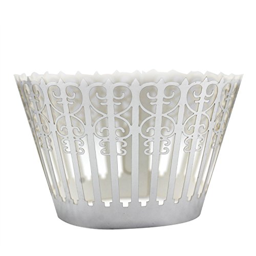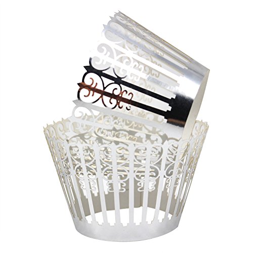 KEIVA Pack of 100 Filigree Bake Cake Paper Cups Little Vine Cupcake Wrappers Baking Cup Liner Muffin Holder Case for Wedding Birthday Baby Shower Party Decoration (Mirror Silver)
