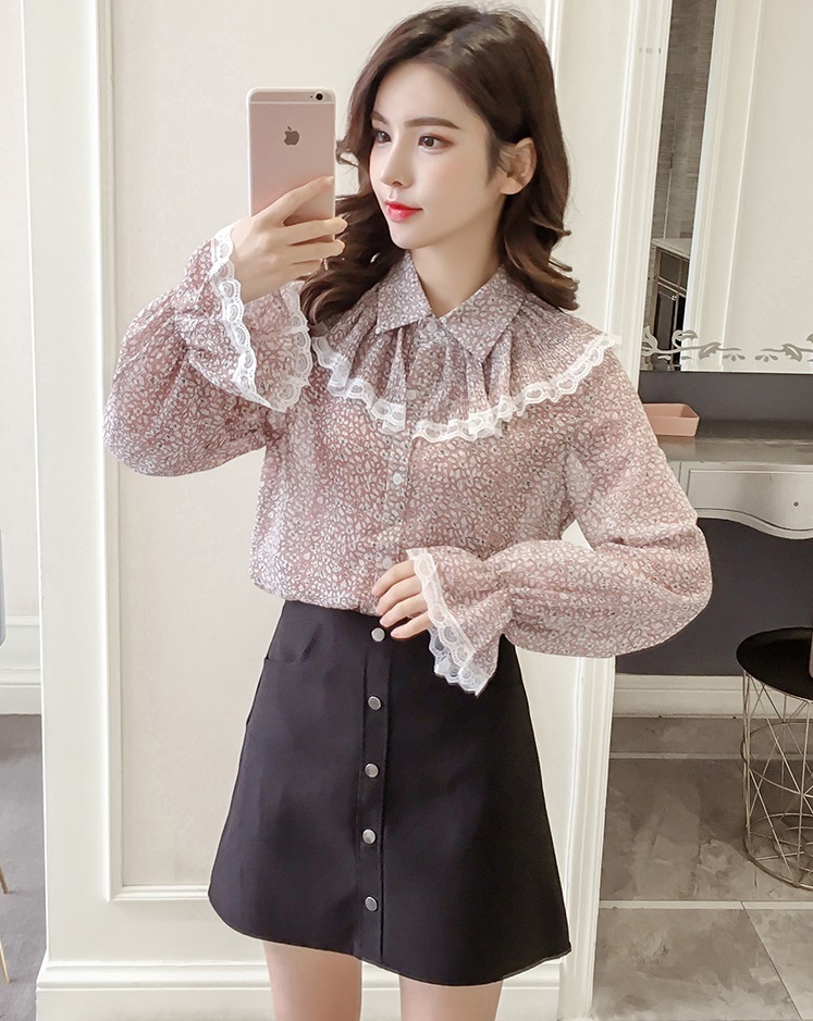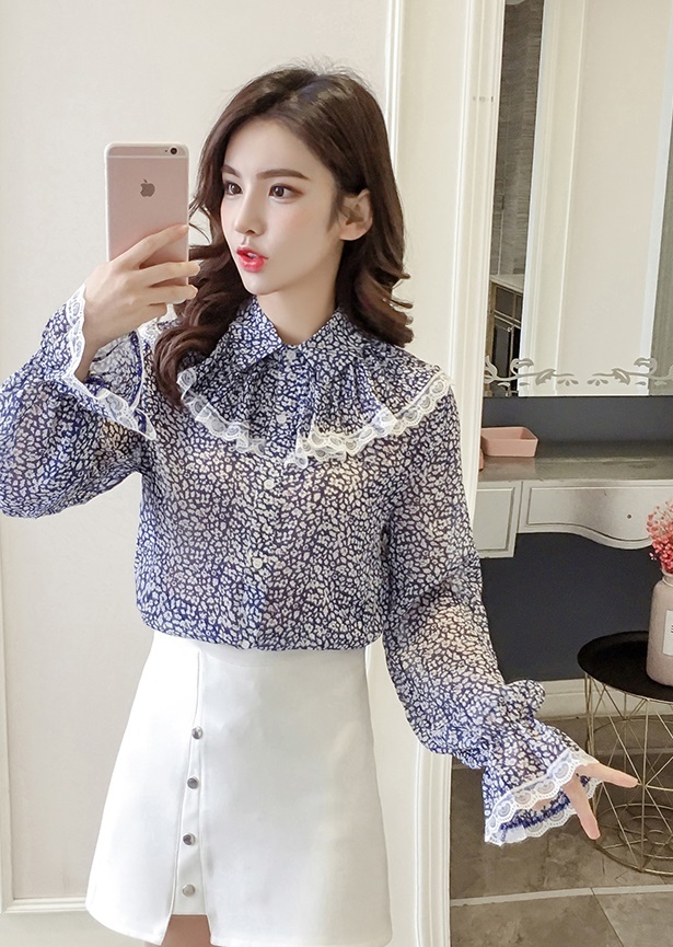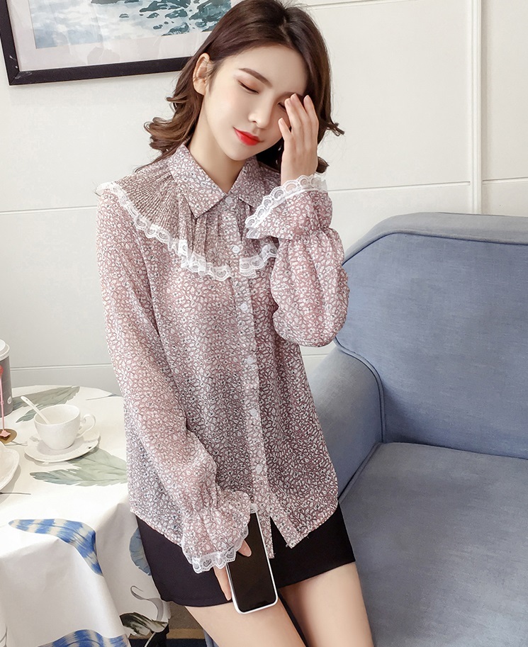 シフォン素材とレースで、とことんガーリーに着こなせるブラウスです☆