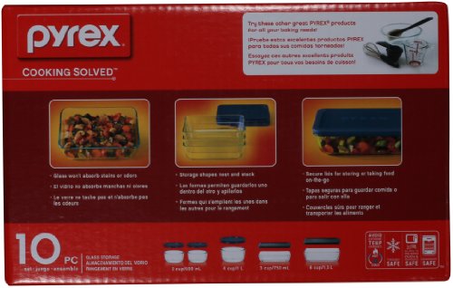 Pyrex Simply Store 10-Piece Glass Food Storage Set with Blue Lids B00005B8K5
