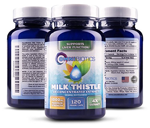 MILK THISTLE 4X CONCENTRATED EXTRACT IS THE STRONGEST MILK THISTLE SUPPLEMENT AVAILABLE. 1000MG SILYMARIN EXTRACT. EASY TO SWALLOW VEGETARIAN CAPSULES, GREAT FOR LIVER CLEANSE & DETOX! 120 COUNT VALUE SIZE