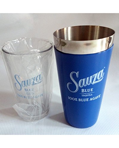 -. Title : "Sauza Blue" Professional Two-Piece Glass and Metal with Rubber Wrap Cocktail Shaker