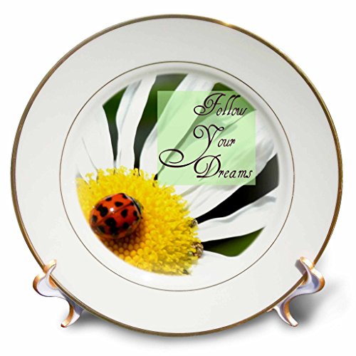 3dRose cp_31470_1 Follow Your Dreams Ladybug and Daisy Flower Inspirational Quotes-Porcelain Plate, 8-Inch