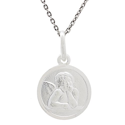 -. Title : Sterling Silver Angel Medallion Pendant Necklace
