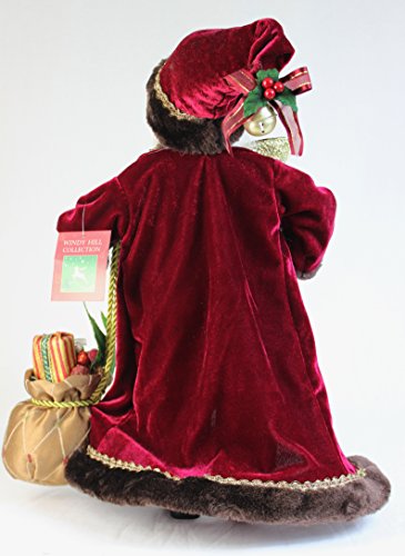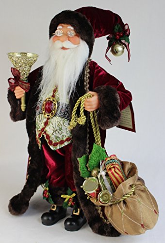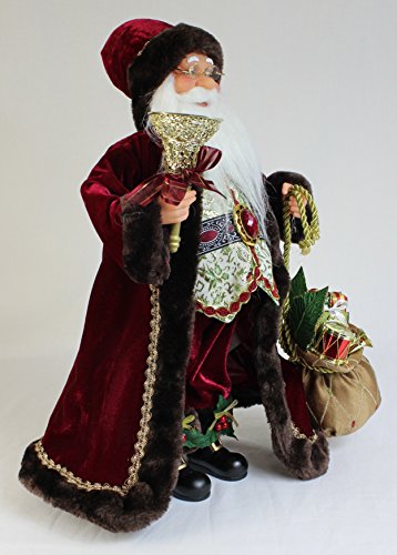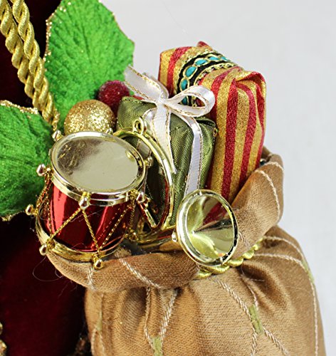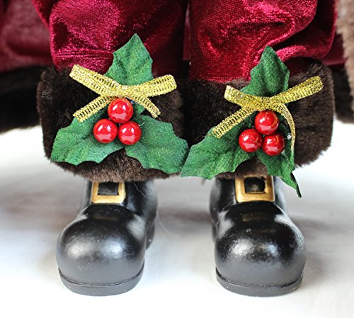 16" Inch Standing Burgundy Toy Bag and Bell Santa Claus Christmas Figurine Figure Decoration 16713