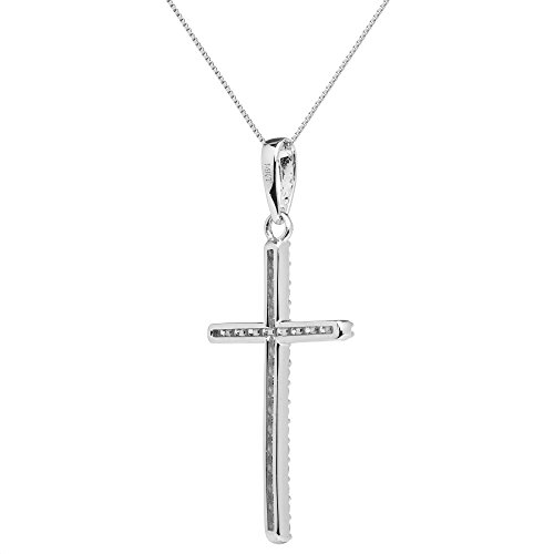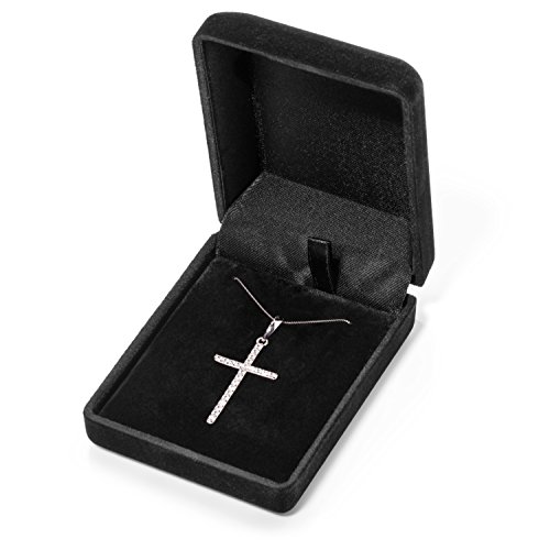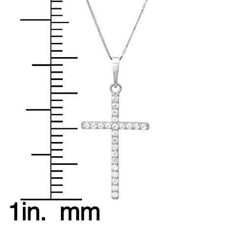 -. Feature : High quality jewelry you can wear every day with P.R.Ide! / Gorgeous Pave Cross Round Cut Cubic Zirconia (CZ) Pendant. Top Quality Grade AAAAA Cubic Zirconia. 23 stones, each sized 1.8mm (.02 ct each, 0.46 cttw diamond equivalent) / Pendant with a sturdy box link chain and sP.R.Ingring clasp. 18" length sits on the collarbone. Select either a very fine .50mm chain thickness, or slightly thicker .60mm chain. The box-link chain has more gold per inch than any other chain link style. It appears delicate, but is sturdy enough for every day wear. / Solid 14K White Gold - 585 Fineness. Pendant length = 40.0mm, Pendant width = 18.7mm. / Ready for gift-giving in a beautiful two-tone "Everyday Elegance Jewelry" drawer outer box with a quality black velvet presentation box (gift box may vary)
