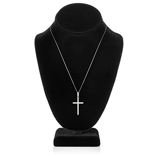 -. Title : 14K Solid White Gold Pave Cross, Round Cut Cubic Zirconia Pendant Necklace (.46 cttw), 18 Box Link Chain, Gift Box