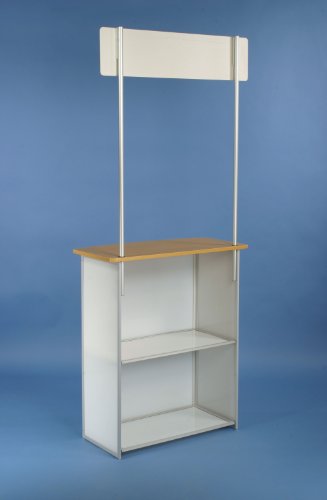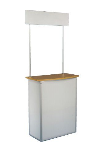Displays2go Promotional Trade Show Counter with Header, Carrying Bag Included, White Corrugated Plastic with Aluminum Frame and Laminate Countertop (PROMXMNV2)