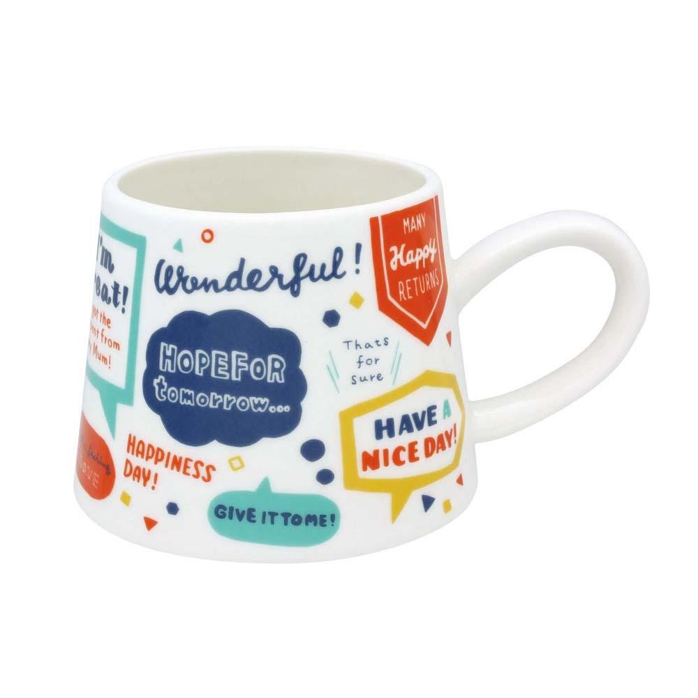 日常の楽しい会話が溢れ出すマグカップです。おしゃべりが楽しく弾みそう!!