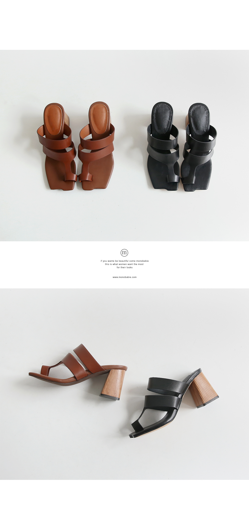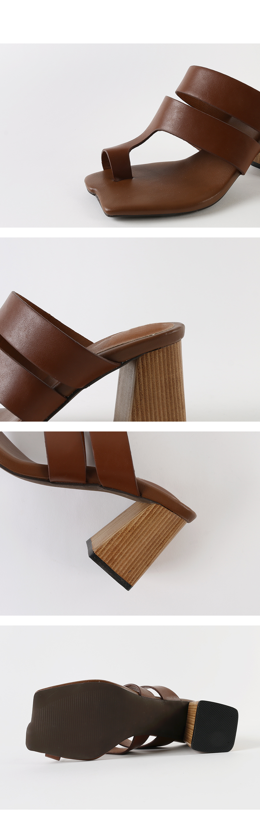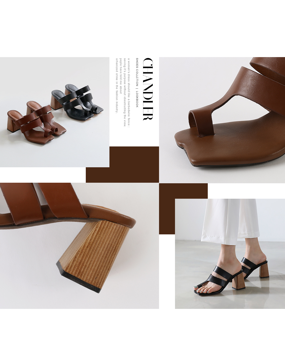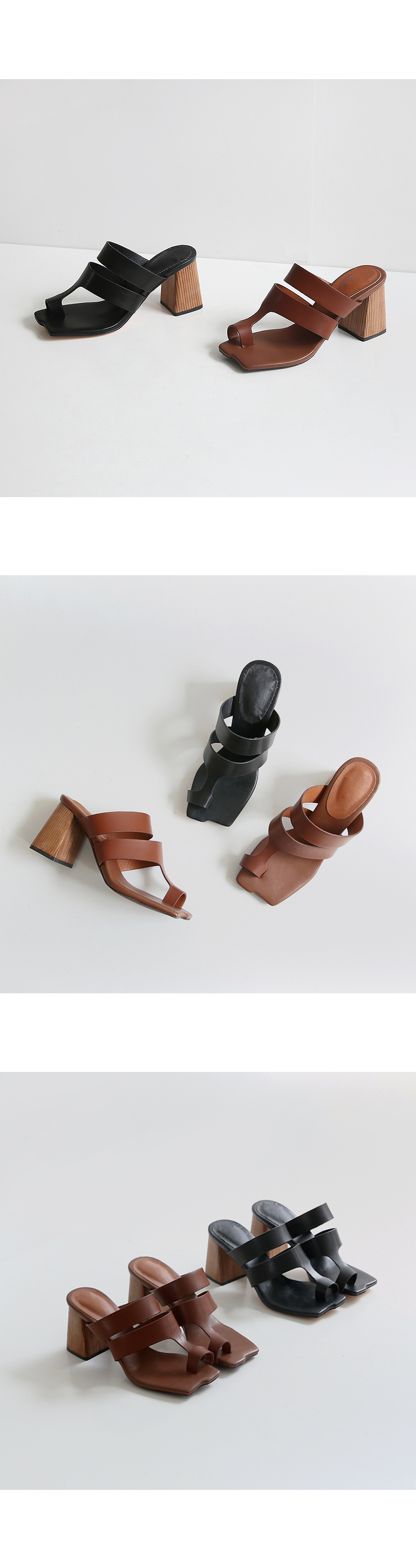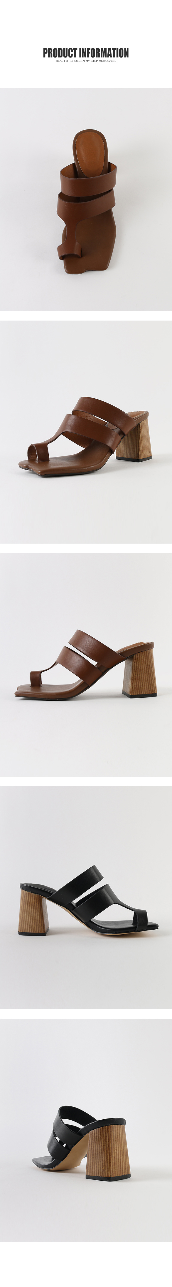 DETAILS - 소재 : 인조소가죽 우드굽 - 컬러 : brown,black - 피팅감 : 정사이즈 / 무게 : 보통인편 - 착화감 : 뒷꿈치 쿠션으로 편안해요 - 모델피팅 : 235