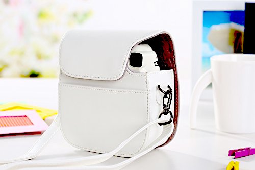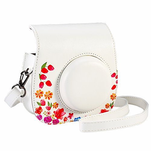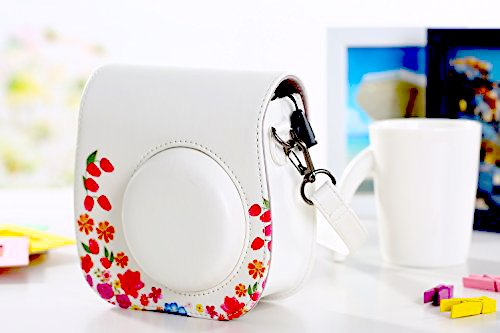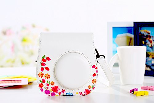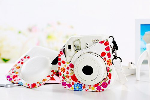 SAIKA Vintage Hot Red Flower Floral Case Cover for Fujifilm Instax Mini 8/8+ with Detachable Shoulder Strap&Pocket