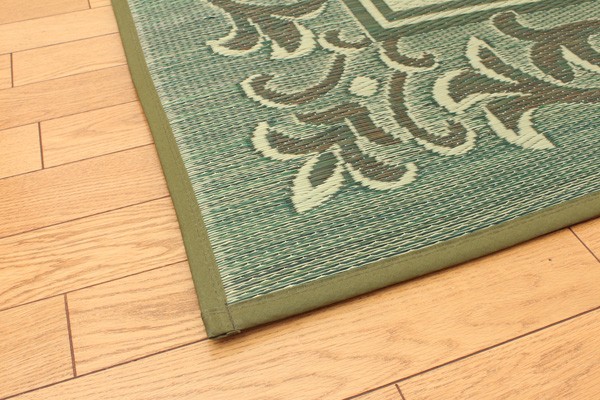 クッション性を追求したボリュームタイプ(メーカー比約3倍)のカーペットです。裏地にはソフトテックというポリエステル素材を使用しています。ポリエステル繊維を、メーカーが新たに開発した独自の技術で圧縮し、通気性を保ちつつ、圧倒的なクッション性をのある素材に仕上げました。軽量床衝撃音低減性能LL(1)-8を取得しており、床下への騒音を軽減する効果もあります。い草には空気の自然浄化作用、湿度の調節作用などがあります。また汚れにくく、使用するうちに黄金色に変化し味が出ます。い草に青森ヒバ加工を施しています。(抗菌、防臭効果)