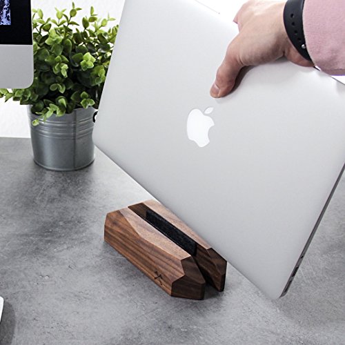 -. Feature : ⭐️⭐️⭐️⭐️⭐️ Wooden MacBook Dock for stylish storage during charging | Innovative & timeless | Design packaging | Part of our new desk collection / ✅ QUALITY ➟ Handmade of real, sustainably sourced & solid wood 🌱 For every sold product we plant a new tree 🌱 / ✅ FUNCTION ➟ Space-saving for your desk | Compatible with MacBook 11, 12, 13, 15 & many Notebooks (due to changeable felt stripes) / ✅ COMFORT ➟ Stylish storage for your MacBook | Innovative, invisible micro-suction pads for stable stand / ✅ CLAIM ➟ Each stand comes with its individual grain | 24 months warranty + reliable customer support