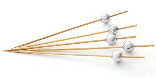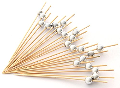 PuTwo Handmade Cocktail Picks 100 Counts Sticks Wooden Toothpicks Party Supplies - Silver Pearl