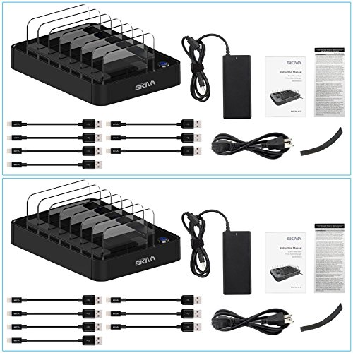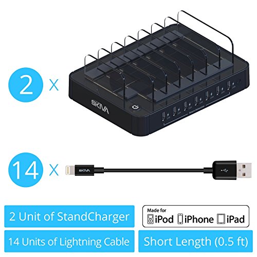 [2-Pack] Skiva StandCharger 7-Port 84W Charging Station with 2.4A Smart Rapid USB Ports for iPad, iPhone & more (Includes: '14 x Short Apple MFi Lightning Cables' and '2 X StandCharger') [Model:AC129]