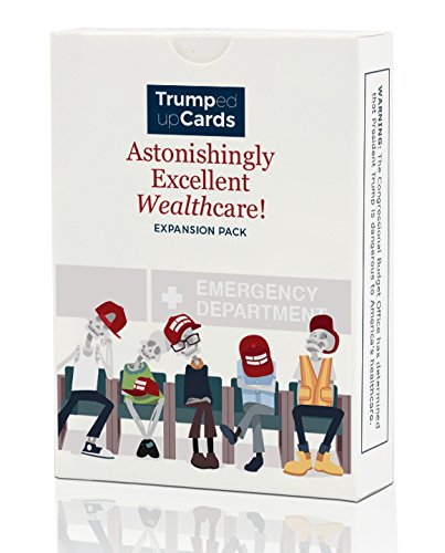 The "Astonishingly Excellent Wealthcare!" Expansion Pack focuses on the Trump Administration's efforts to repeal and replace the Affordable Care Act with something that will be so, so much worse for millions of American citizens. Sample Question cards include: