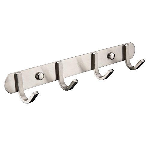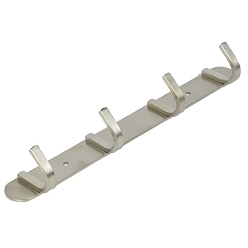Mellewell Hook Rail Rack Wall Hanger with 4 Hooks, Stainless Steel Brushed, 8011H4
