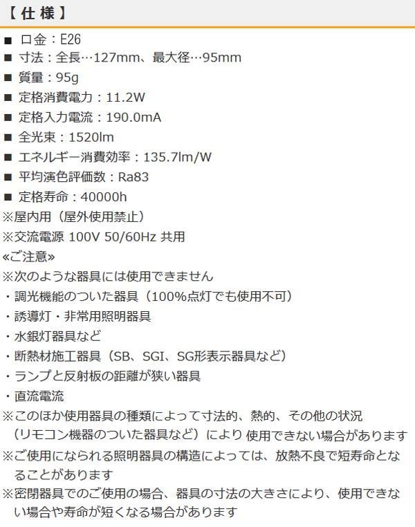 ボール電球100形相当の明るさのLED電球です。口金E26の電球色です。室内でのみご使用いただけます。