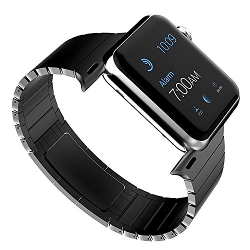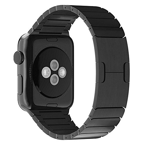 -. Title : AWSTECH New 38mm Stainless Steel Metal Replacement Watchband Link Bracelet with Butterfly Closure for Apple Watch Series 1 Series 2 - Black