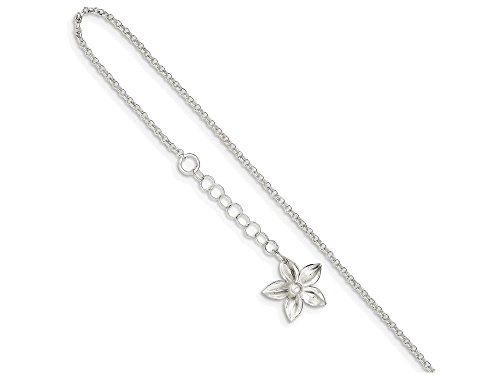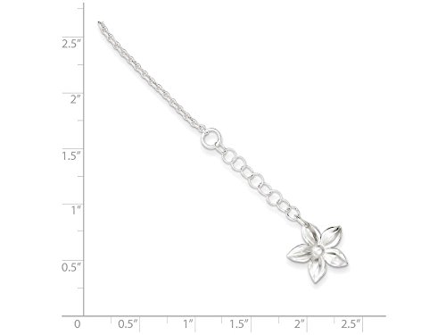 -. Title : Sterling Silver Polished Flower W/ 1in Ext. Anklet