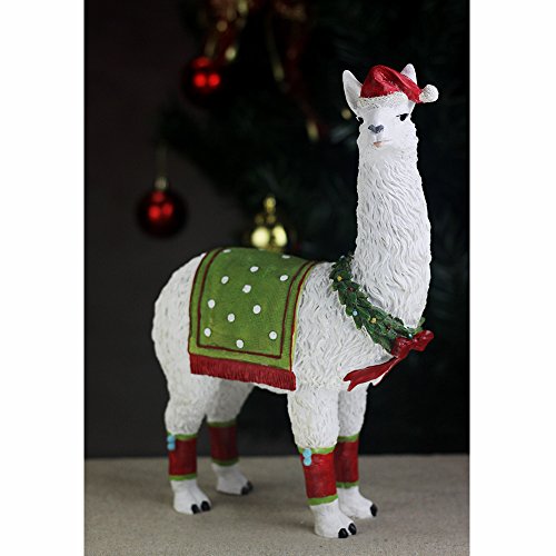 Fargal Resin 13" Alpaca Wears Chirstmas Hat and Cloth Holidy Decorative Figurine