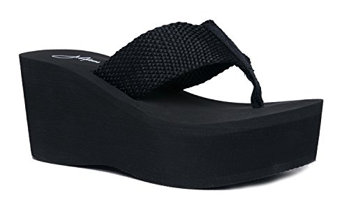 Product Description These trendy slip on flip flop sandals are perfect for any lazy day. Make any easy outfit look instantly stylish with these comfortable vegan sandals. The foam wedge heel makes it easy to walk anywhere in Wave Sandals by J. Adams. Available in Black, White, and Pink! 0