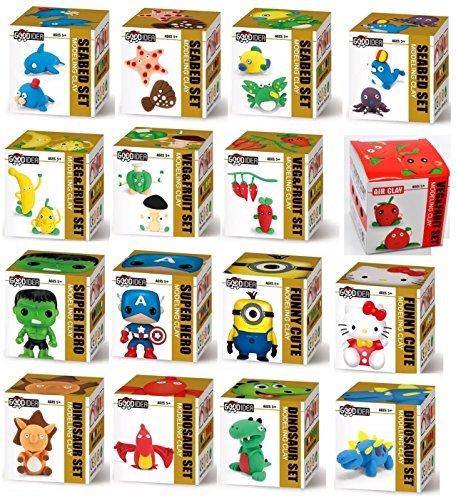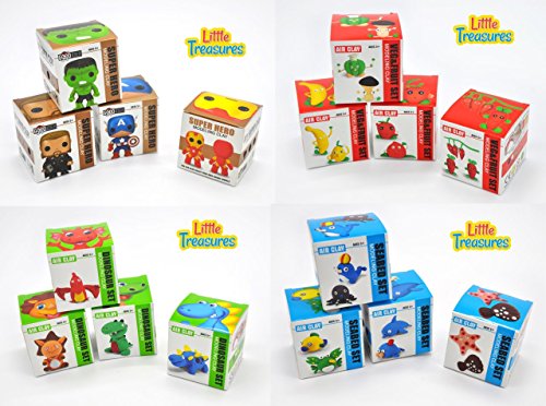 Little Treasures - Quality Modeling Clay set of 16 units: This high quality clay modeling set is perfect for your little ones aged 5 and over to put their creativity to use when crafting a variety of super hero & funny cute Characters or fruits vegies and dinosaurs, creating the scene of their dreams. Coming complete with multiple colors of high quality, non-toxic and safe to handle clay packages the set offers wonderful play time for you and your little ones. Also included in the set is a highly detailed set of illustrated instructions allowing your child to use their independence and creative thinking when modeling their own model clay set with minimal supervision and help needed. Included in the healthy sets are a range of colorful and different objects allowing your child to collect the full set and create a life like simulation of a mystical colorful supper fun supperheros and cute using their creativity and colorful and exciting safe clay sets. The set motivates your child to develop their fine motor-skills, creativity, communicative and imaginations with a fun to use, safe and complete modelling toy. Description: A beautifully packaged clay modeling set. Comes with a range of colours of clay in separate high-quality packaging and is non-toxic, clean and safe for your boy or girl aged 5+ to play with. The set also includes a descriptive instructions leaflet to aid your little one in building the sea bed clay model of their dreams. The instruction manually is beautifully illustrated allowing your child to follow the instructions themselves while engaging them with the detailed illustrations.Feature