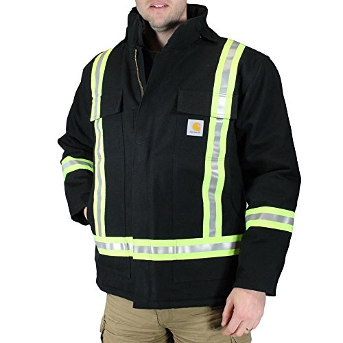 Studio : Carhartt Publisher : Carhartt Product Description 12-ounce, firm-hand 100% ring-spun cotton duck - Nylon lining quilted to arctic-weight polyester insulation - Fleece-lined insulated stand-up collar with flap to cover hidden snaps for detachable optional hood - Two large lower-front pockets with flaps and hook-and-loop closures - Left pocket has pencil opening - Two inside patch pockets with hook-and-loop closures - Two-way brass zipper front with hook-and-loop closure - Inner-sleeve, rib-knit storm cuffs - Split-back construction - Pleated bi-swing back and elbow pleats for ease of movement - 2-inch contrasting trim (RT86™ 220C C3000) with 3M™ Scotchlite™ Reflective Material (#9740) ANSI approved reflective trim - 360 degree visibility with "X" pattern on back - Back length: Large Regular: 31.5 inches; Large Tall: 33.5 inches - 0
