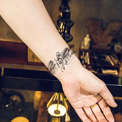 Set of 2 Waterproof Temporary Tattoo Stickers Cute Black Grey Music Notes Design Body Art Man Woman Makeup Tool