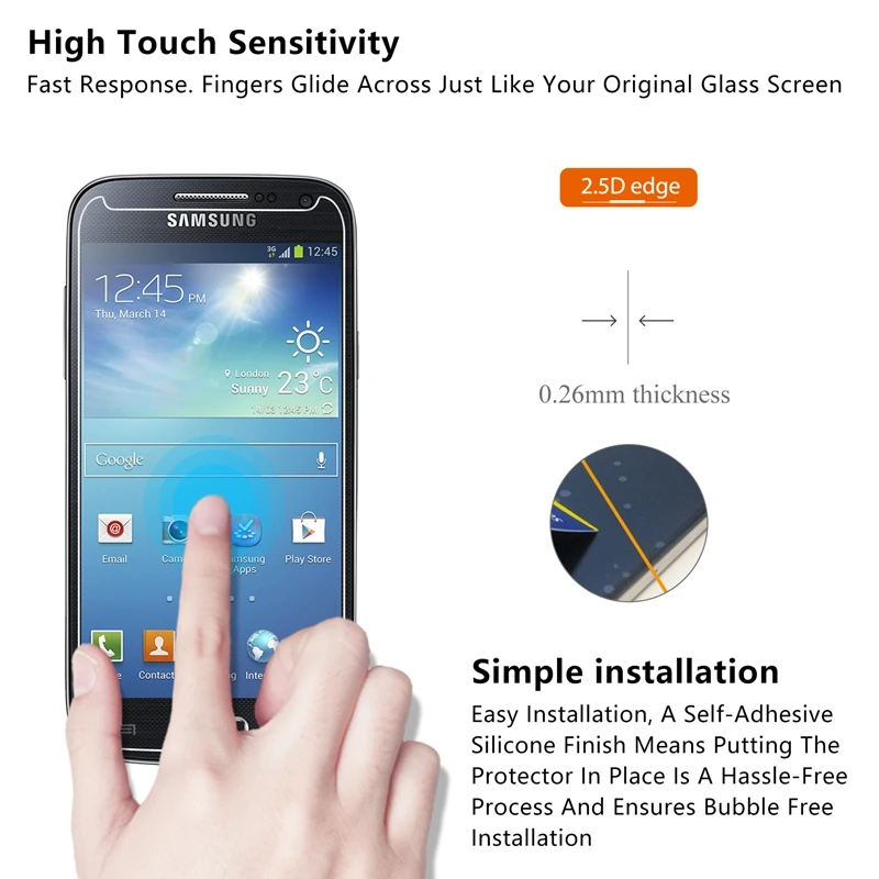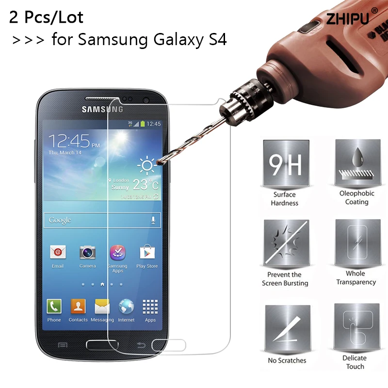 2 Pcs/Lot 2.5D 0.26mm 9H Premium Tempered Glass Screen Protector For Samsung Galaxy S4 i9500 Toughened protective film