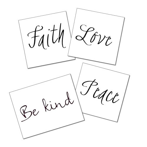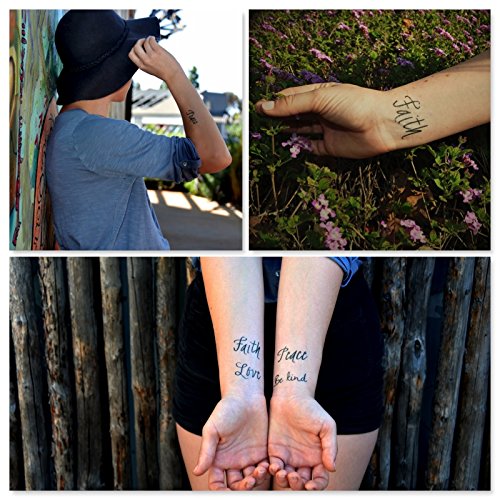 Peace, Be Kind, Love, Faith Inspirational Words Temporary Tattoo Set of 8 - Friend Gift - Accessory - Body Art - Wrist Tattoo - 50% Bulk Discount