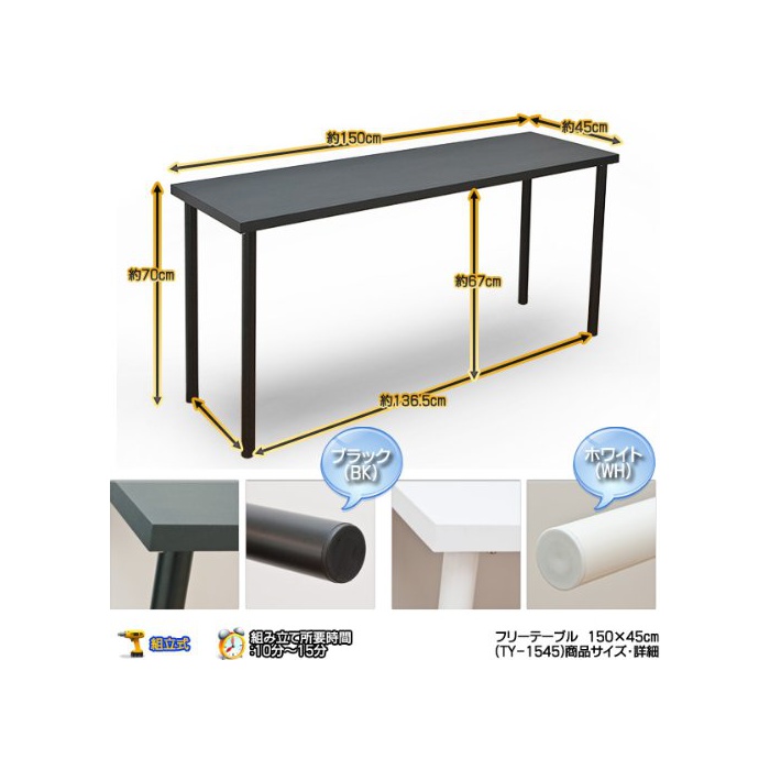 원본상품명: フリ?テ?ブル150×45cmスリム幅 ホワイト(TY-1545WH)
