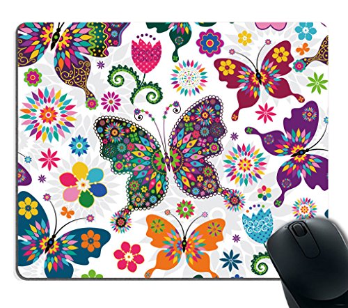 Smooffly Original Vintage Pattern Colorful Butterfly and Flower Mouse Pad