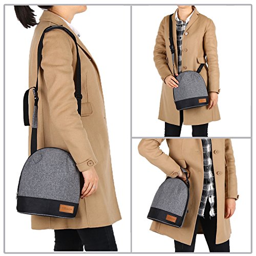 VERY CLEVERLY DESIGED HANDLE BAG:The bag is initially set with the long crossbody strap in place. To shorten the strap, you simply unclip the strap from the clip closest to the bag and from the clip on the short handle part of the strap. You then clip the short end of the strap to the clip on the bag. The longer portion of the strap can be stored in the zippered compartment on the back of the bag.