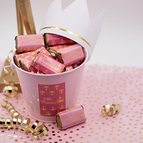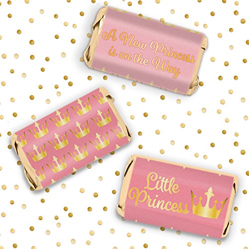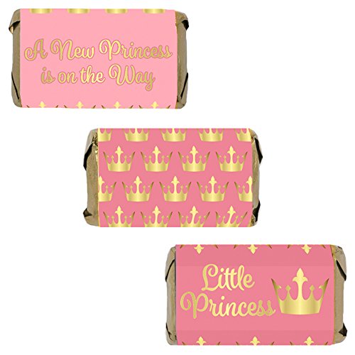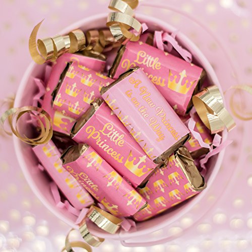 Pink and Gold Princess Girl Baby Shower Miniatures Candy Bar Wrapper Stickers (54 Count)