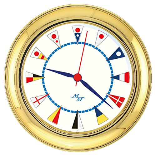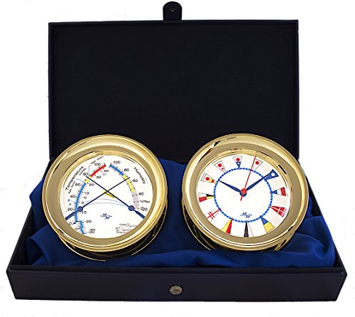 Windlass Gift Set Clock & Comfort Meter by Master-Mariner, Gold finish, Ivory flag dial