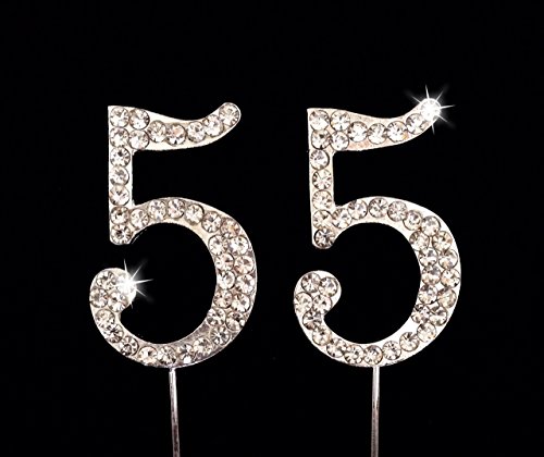 55th Birthday / Wedding Anniversary Number Cake Topper with Sparkling Rhinestone Crystals - 1.75