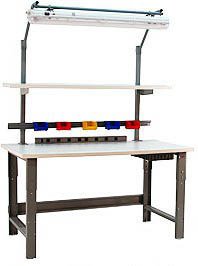 Roosevelt Workbench With Formica White Laminate Top And Square Cut Edge, 1,200 lbs Capacity, 24" Depth x 60" Length, 30"-34.75” Adjustable Height