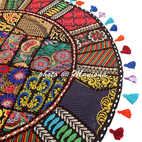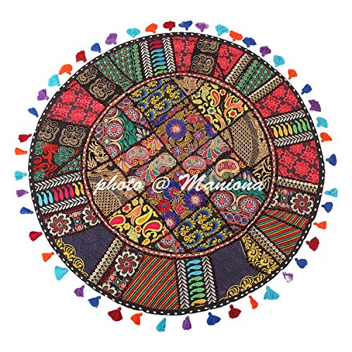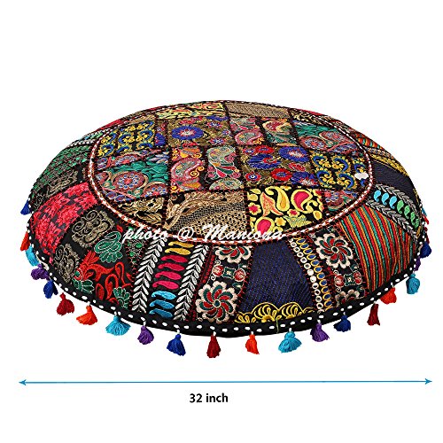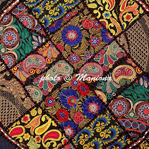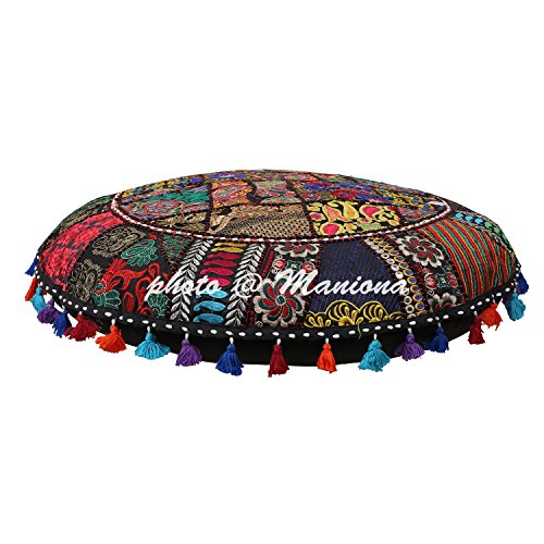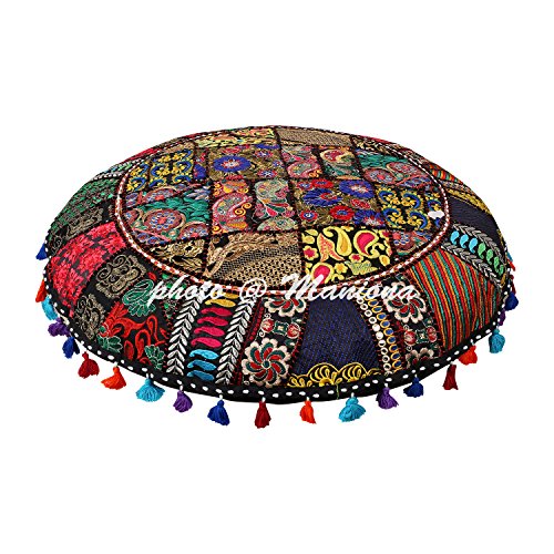 Studio : Maniona Crafts Publisher : Maniona Crafts Product Description These are authentic styles Beautiful cushion studded with Heavy Embroidery, In this cover Vintage patches from old, valuable wedding saris dresses are patched and stitched together at random to create a collage like effect and decorated with all kinds of colored , threads, patchwork, raised colored thread work and embroidery in intricate designs with beautiful tassel work. These are beautiful handmade cushion/pillow cover with rich embroidery and exotic jewel colors. Beautiful "Khambadiya" floor pillow made by hand by artisans in Barmer, India from carefully chosen and sown together patches from vintage saris, lenghas and wedding dresses. Witness the exquisite embroidery and thread work on a vibrant cotton backing, creating a stunning collage bursting with gorgeous patterns and colors!The floor cushion cover has a zipper closure at the bottom which can be used to stuff the cover with cotton. The filling can be of cotton, old clothes, beans used in the bean bags or simply you may get it filled from the cotton workers available in your locality. Since the floor cushion cover is made from vintage fabric patches, each cover is unique. There will be VARIATION in the patches however the BASE COLOR of the Floor Cushion cover will REMAIN SAME. We can share the images of the available floor cushion covers if required for you to select the one you want us to ship. There may be slight imperfections due to the products handmade nature which makes the product unique and different from other Floor Cushion covers.PLEASE NOTE THAT IT IS A COVER ONLY AND THE INSERT IS NOT INCLUDED. 0