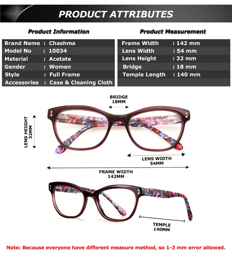 Measurement:54-18-140 (lens width- bridge-temple)