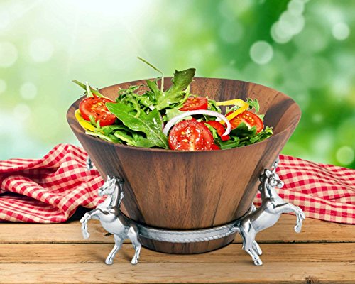 Arthur Court Designs Aluminum Diameter: 12 inch Long Tal 7"Horse Wood Tall Salad Bowl