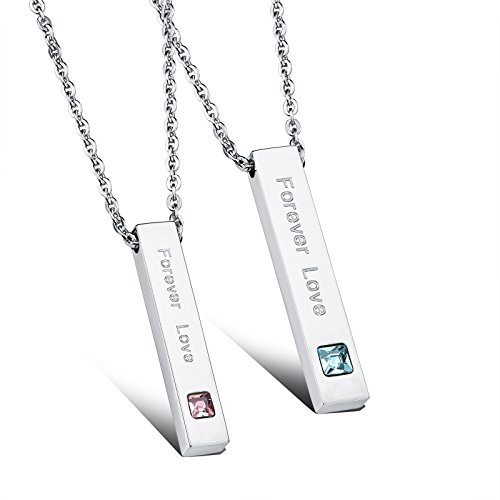 -. Title : [アイドルコ] IDOLCO ペアルック カップル ネックレス セット CZキュービックジルコニア 恋人 刻印「 Forever Love」ペンダント 人気アクセサリー ステンレス製