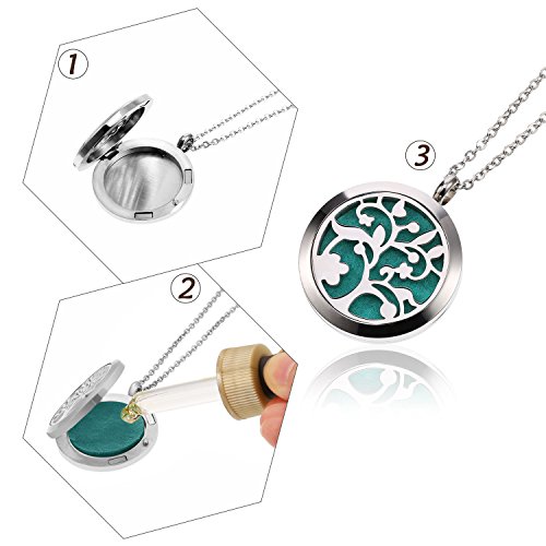 Mtlee Aromatherapy Essential Oil Diffuser Necklace Locket Pendant Stainless Steel Perfume Necklace with 16 Refill Pads and 24 Inch Adjustable Chain (Tree B)