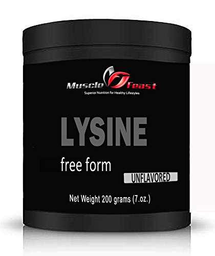 -. Binding : Health and Beauty -. Brand : Muscle Feast -. Color : white -. EAN : 0608866254485 -. Feature : 200 grams (7 Ounces) Pure Pharmaceutical Grade Free Form L-Lysine / Unflavored / Scoop included / may help strengthen connective tissue -. IsAdultProduct : 0 -. Label : Muscle Feast -. LegalDisclaimer : These statements have not been evaluated by the Food & Drug Administration. This product is not intended to diagnose, treat, cure or prevent any disease. The information herein is NOT a substitute for medical advice. ALWAYS consult your doctor or pharmacist before using any of our products. -. Manufacturer : Muscle Feast -. Model : Lysine 200 -. MPN : Lysine 200 -. NumberOfItems : 10000 -. PackageQuantity : 1 -. PartNumber : Lysine 200 -. ProductGroup : Health and Beauty -. ProductTypeName : HEALTH_PERSONAL_CARE -. Publisher : Muscle Feast -. Size : 200 grams -. Studio : Muscle Feast -. Title : L-Lysine 200 Grams (7 Ounces) -. UPC : 608866254485