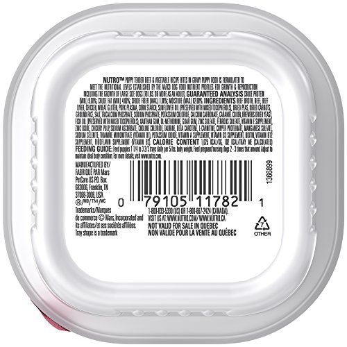 Contains twenty-four (24) 3.5-oz. trays of NUTRO PUPPY Tender Beef & Vegetable Recipe Cuts in Gravy Dog Food Trays (Packaging May Vary)