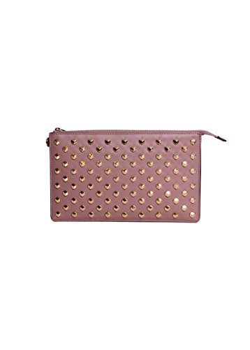 -. Title : Michael Daniela Large Studded Leather Wristlet in Fawn