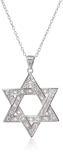 Sterling Silver and Cubic Zirconia Large Star of David Pendant Necklace , 18"