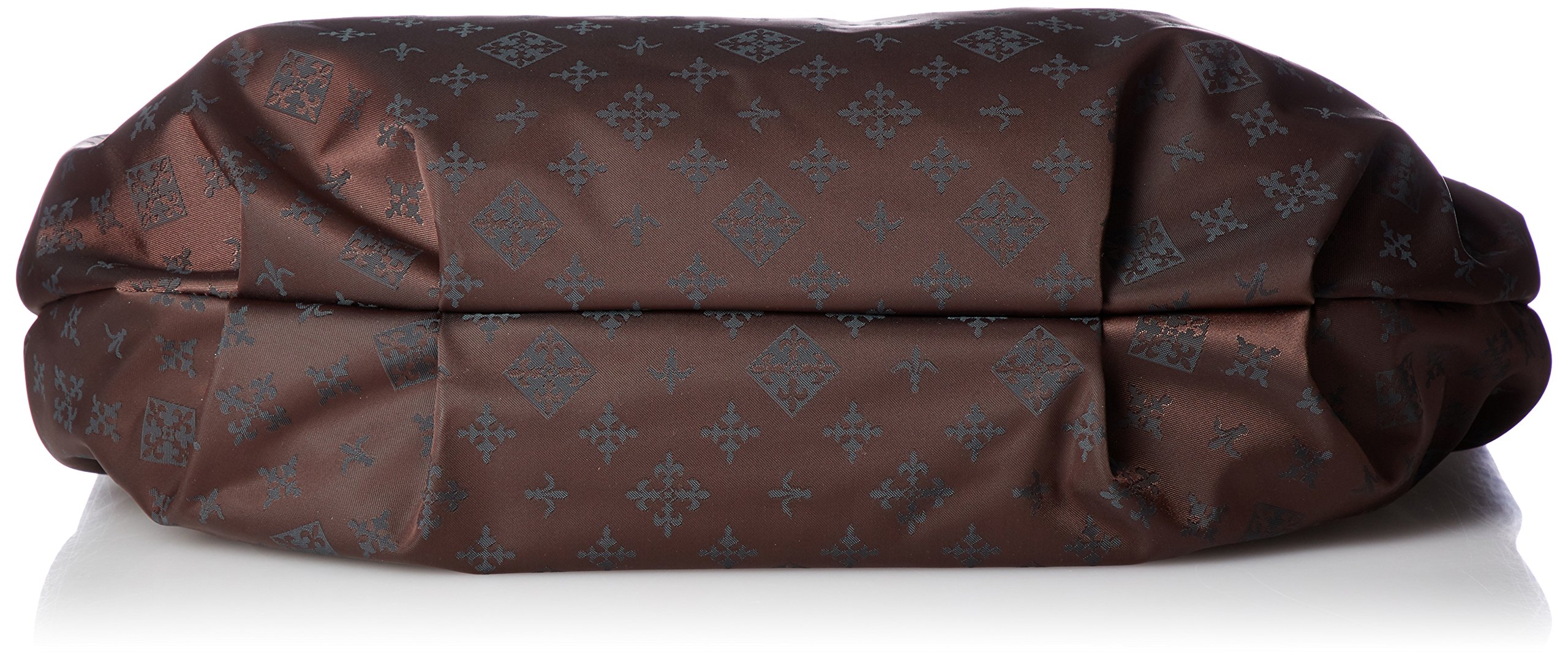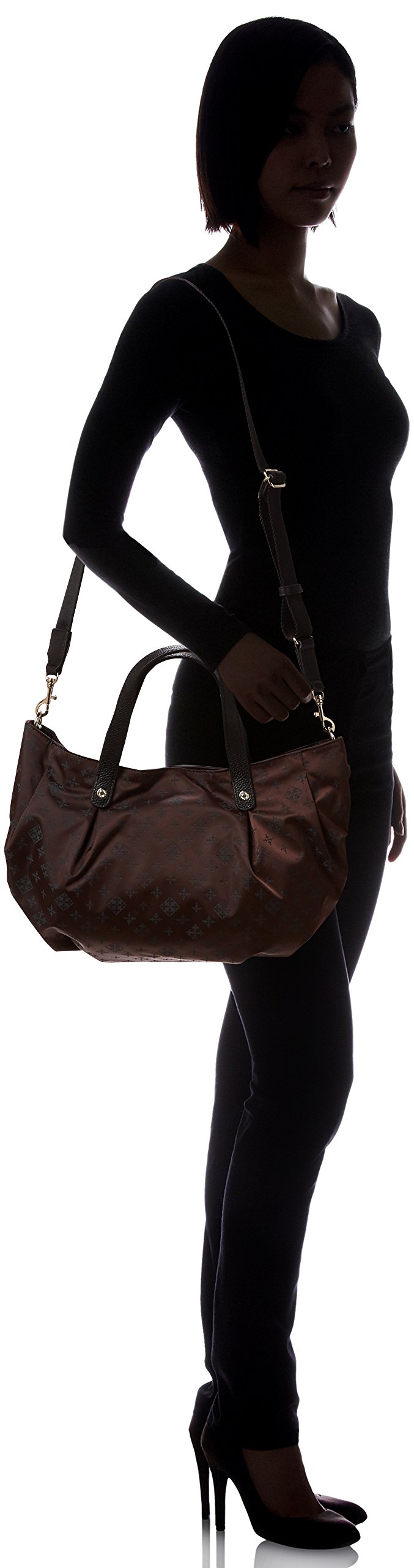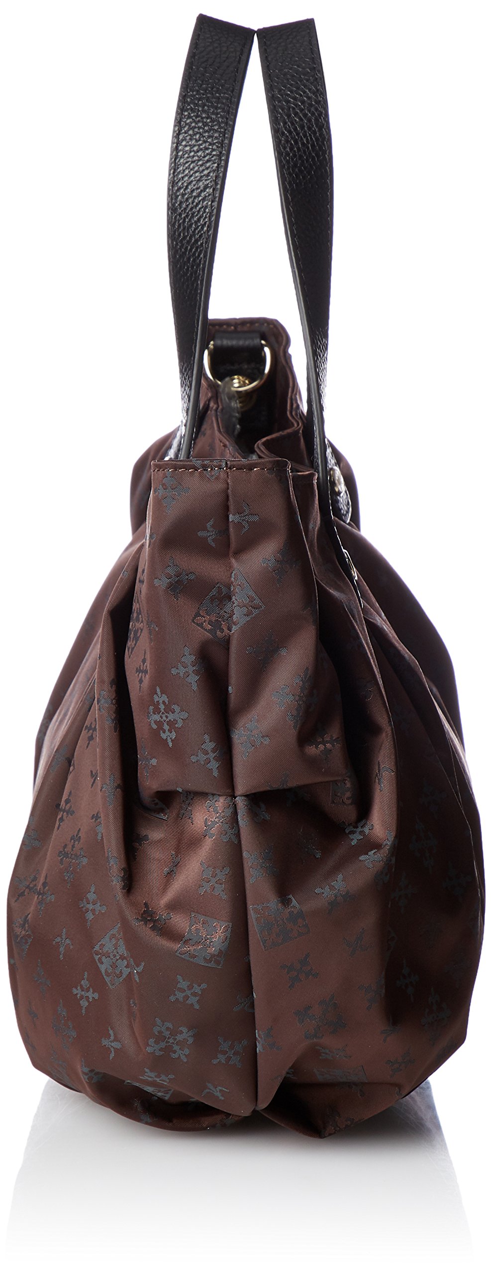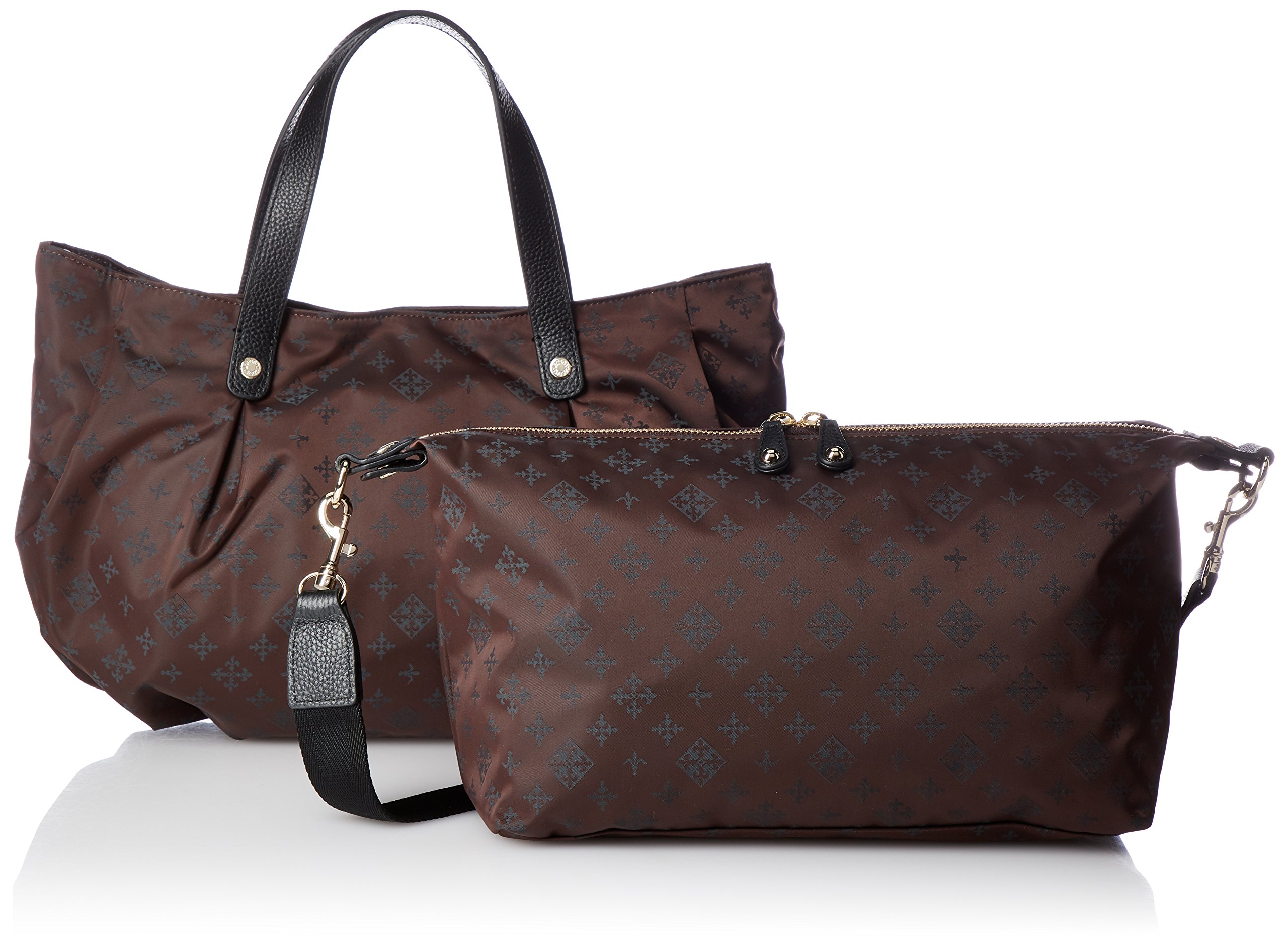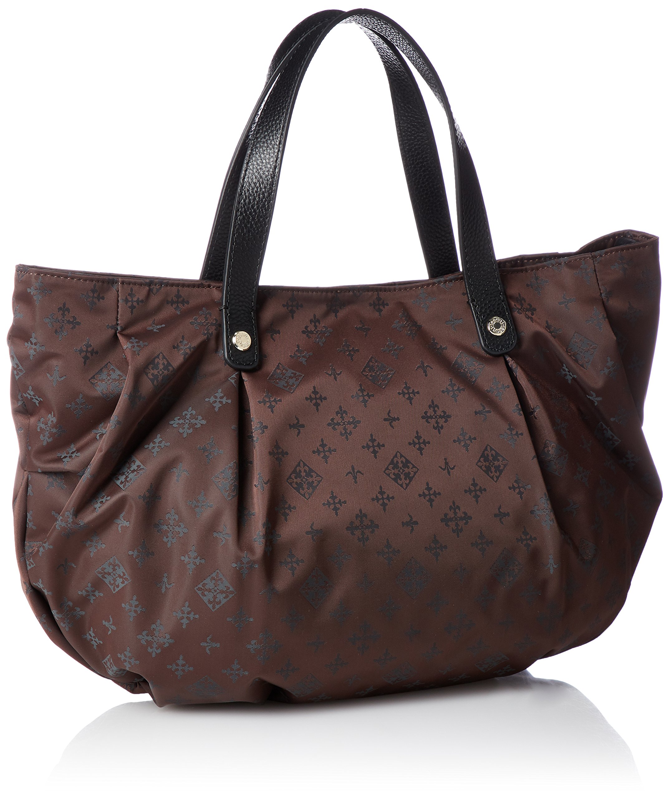 The combination of nylon jacquard and leather handle is an adult impression tote bag not too casual.