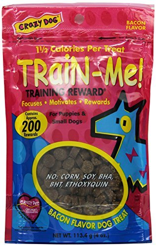 -. Title : Crazy Dog Train-Me! Training Reward Mini Dog Treats, Bacon Mini - 2 Pack