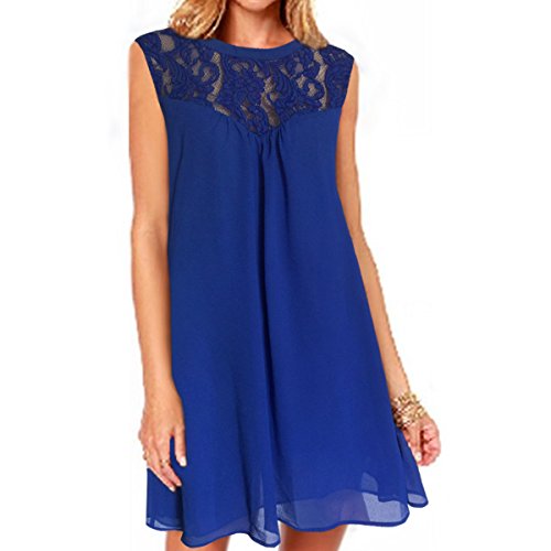 vanberfia Casual Lace O Neck Loose Mini Chiffon Dress (XL, 2202)
